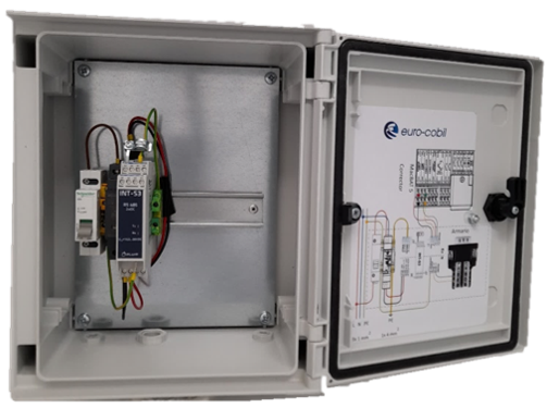 - Carril DIN para colocación de módulos internos.